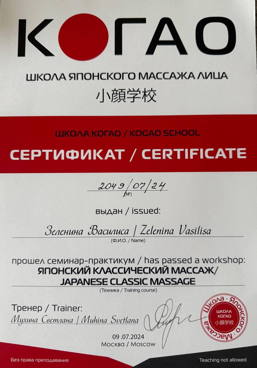 -Прохождение курсов японского массажа, буккального массажа (лицо, шея, декольте) в Tokio , в школе Parafuse